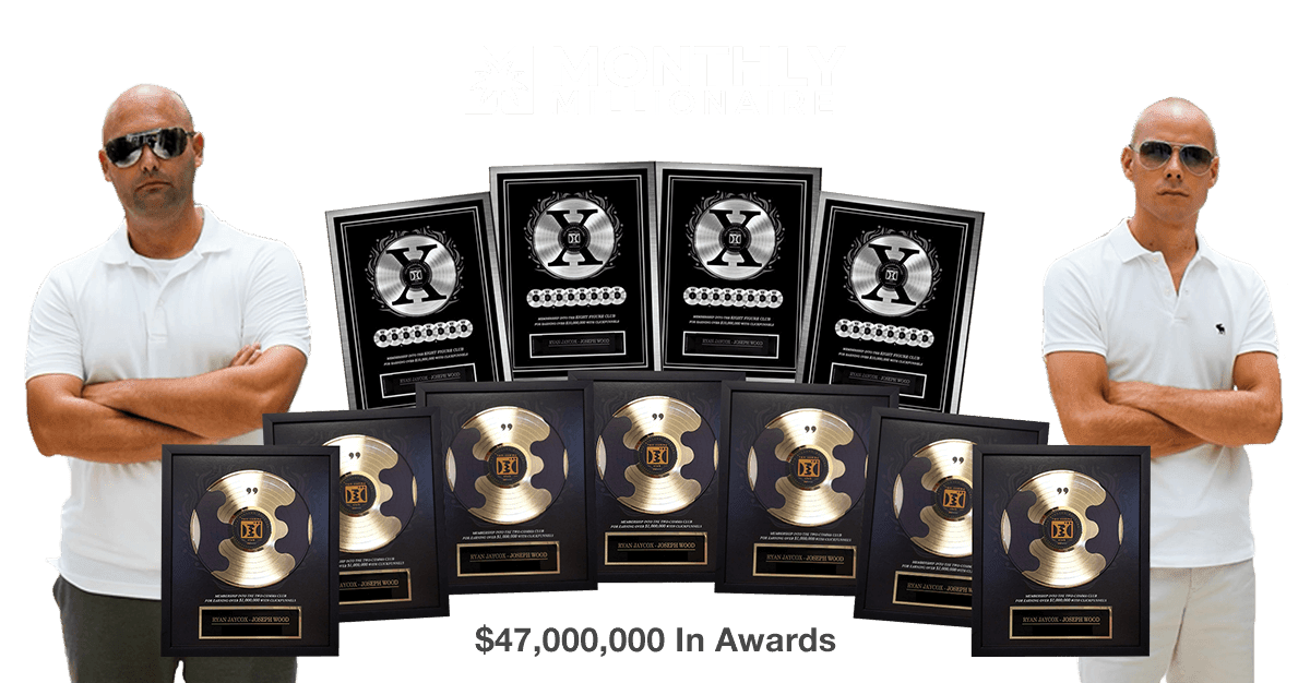 Ryan Jaycox and Joe Wood individually, are not responsible for your actions. You are solely responsible for your own moves and decisions and the evaluation and use of our products and services should be based on your own due diligence. You agree that the Monthly Millionaire is not liable to you in any way for your results in using our products and services.